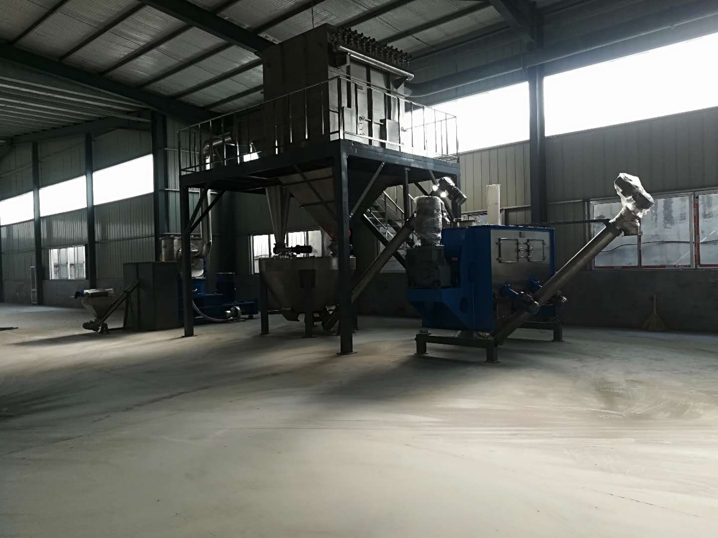 我公司的大型超微机械粉碎机流程组装完成,此流程配套有加料、粉碎、混合、存储和输送等,全自动化操作,一键启动一键停止。